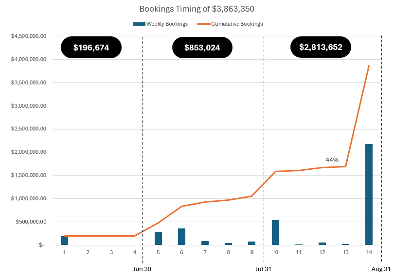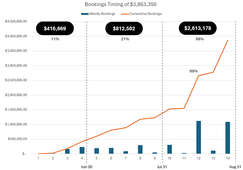 This seemingly minor adjustment has a profound impact. It provides a buffer for those inevitable deal “slips,” ensuring they still land within the current quarter as far as your Board and investors are concerned. It reduces stress, improves forecasting accuracy, and allows your legal, services, and accounting teams to operate without constant pressure.