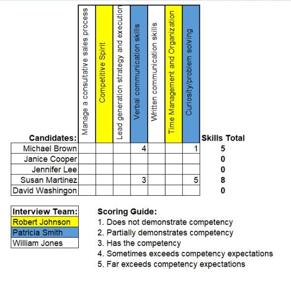 - Creating an Interview Scoring Grid: Develop a grid that lists the key competencies and allows interviewers to score each candidate on a scale of 1 to 5.