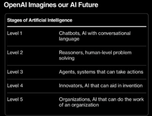 OpenAI below shows their thoughts on what is to come, putting things into 5 levels. As a whole, most people that I am seeing are just barely using Reasoner models with o1 and o3 GPT models or a deep research tool.